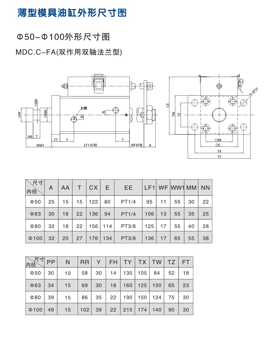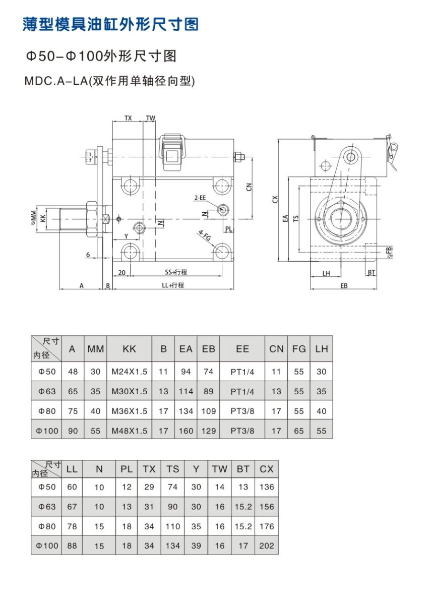 薄型模具油缸 外形安裝尺寸圖