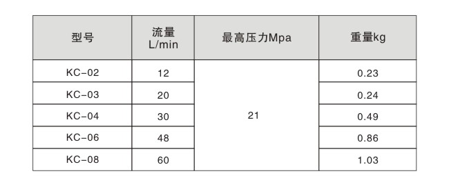 KC-02液壓閥使用范圍: